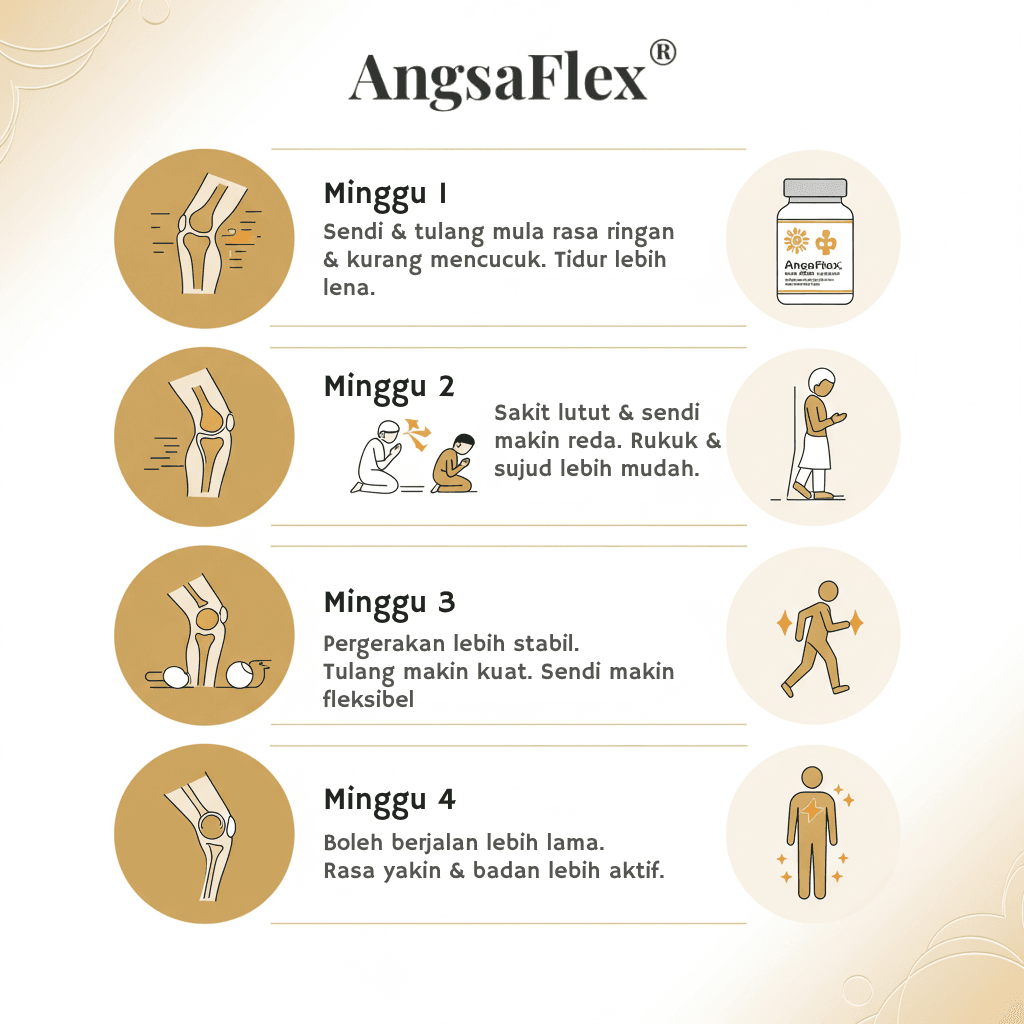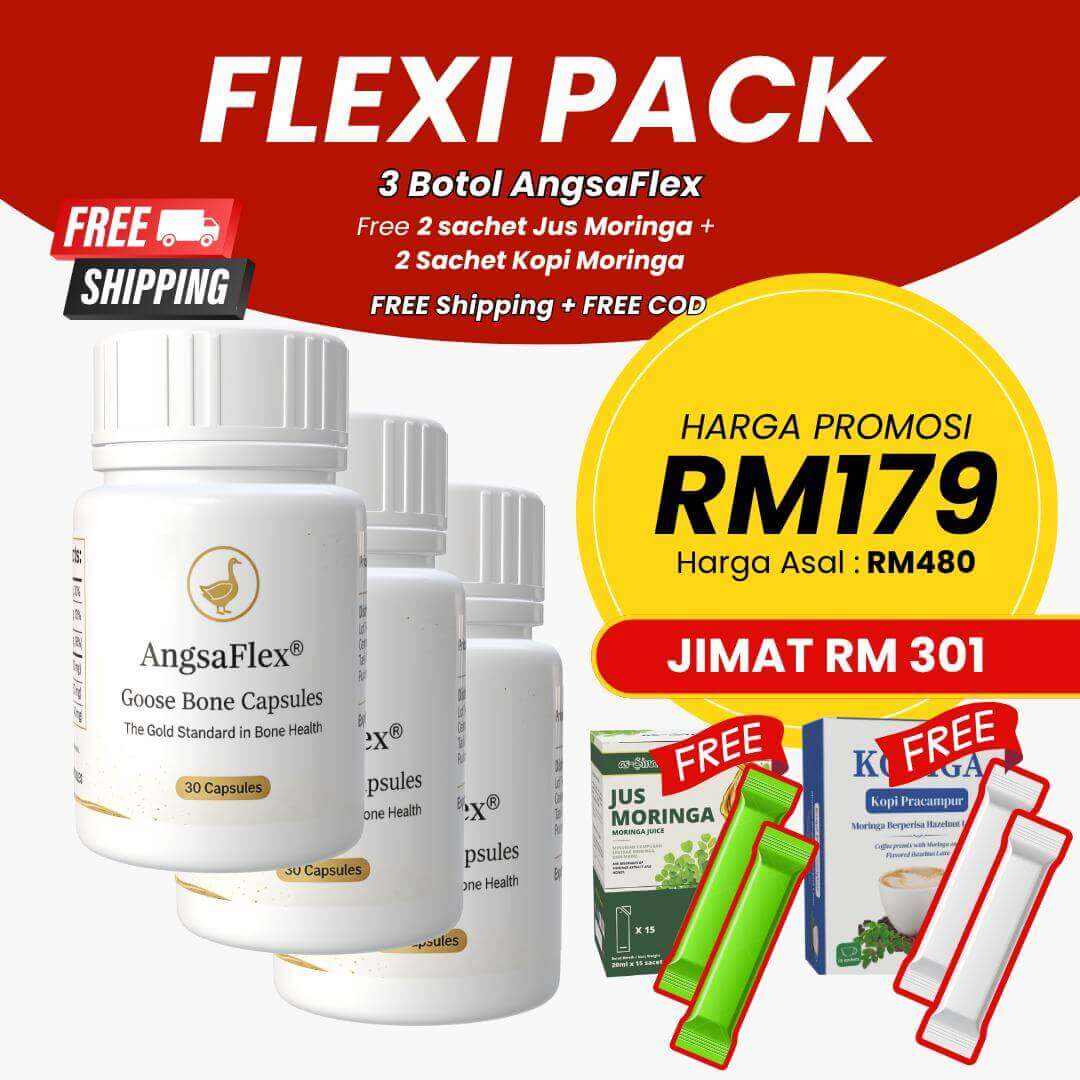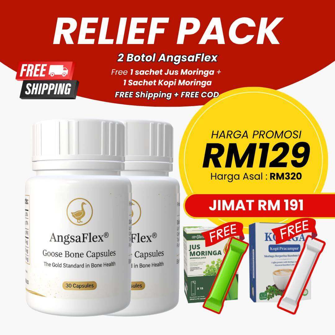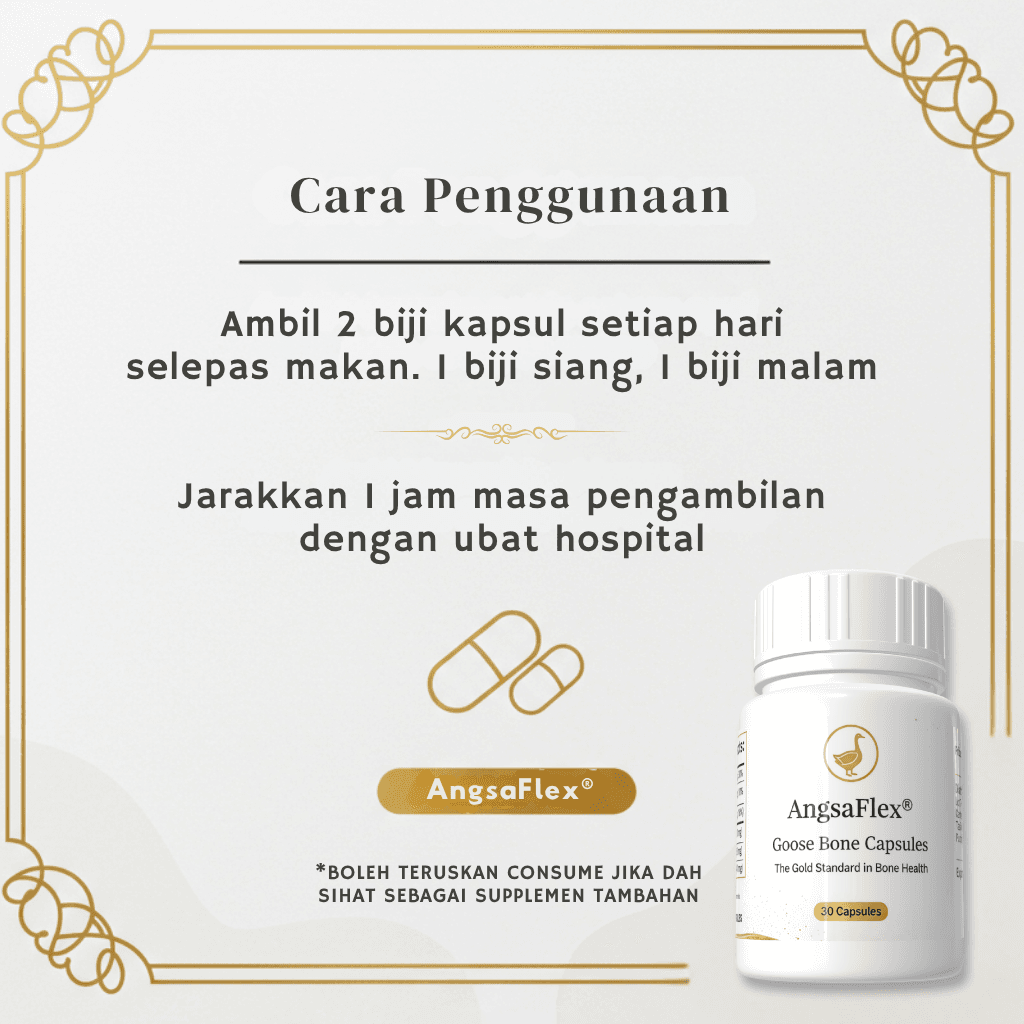 AngsaFlex membantu memulihkan tulang patah/retak, kuatkan tulang rapuh, kurangkan sakit sendi & bengkak, serta bantu masalah saraf & kebas-kebas.
